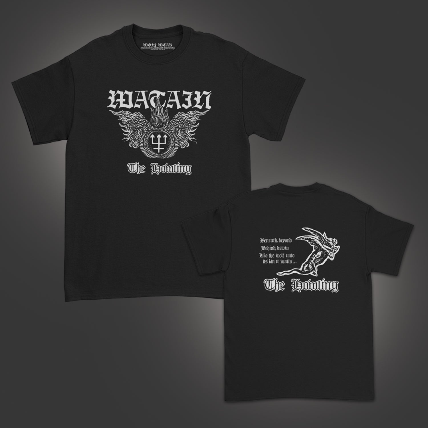 The Watain The Howling Trident Crest design, printed on a comfortable, standard-fitting black t-shirt.