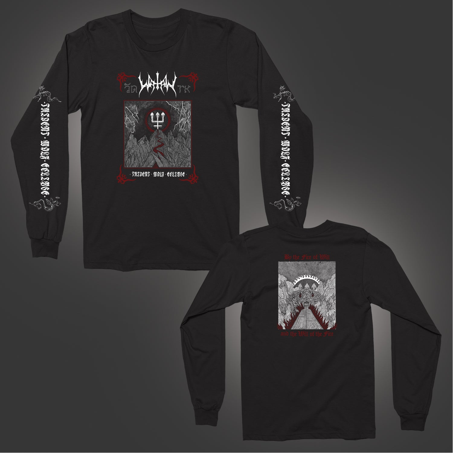 The Watain Trident Wolf Eclipse design, printed on a comfortable, standard-fitting black long sleeve.